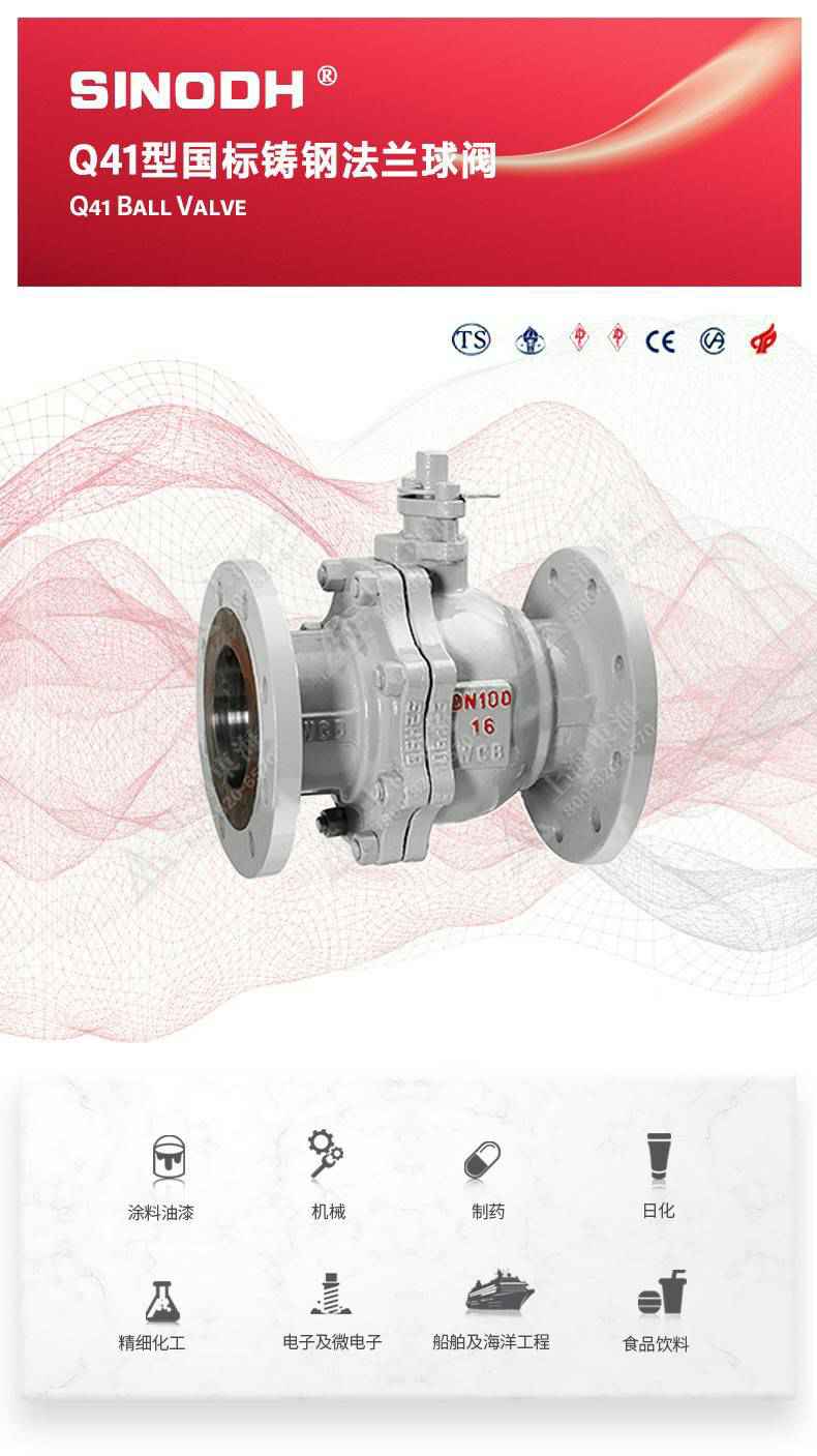 Q41型国标铸钢法兰球阀,为爱游戏官方网站-爱游戏aiyouxi(中国)自主研发生产。本产品设计制造标准符合GB/T12237、GB/T12224标准。该产品的球体在介质压力作用下球体能产生一定的位移并紧压在出口端的密封面上,保证出口端密封。适用于水、溶剂、酸和天然气等一般工业介质也适用于工况恶劣的介质,如氧气、过氧化氢、甲烷和乙烯等介质。
